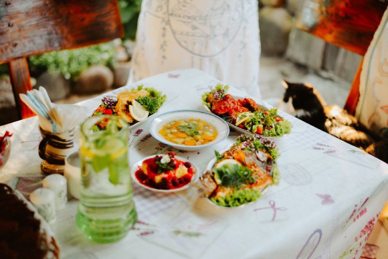 - DAŽĀDS ZIViŅŠ’ AR RĀCEŅIEM UN ZALATIŅIEM - zivs (kāds nu būs noķērts) ar rāceņiem, dažādiem salatiņiem un zosti;